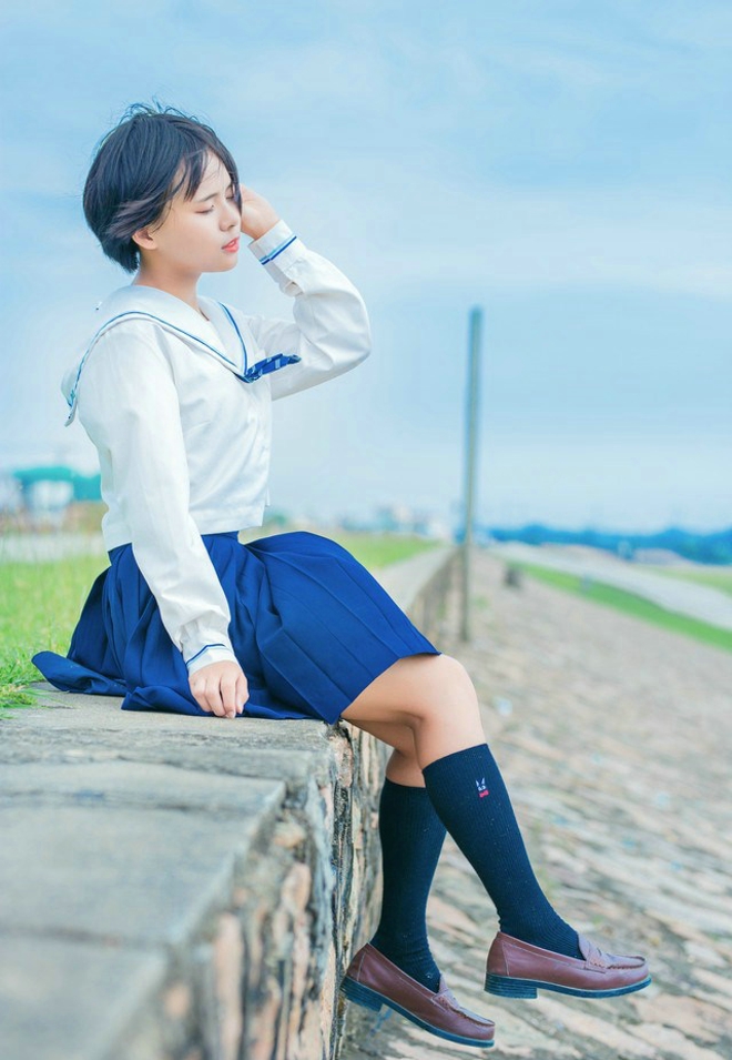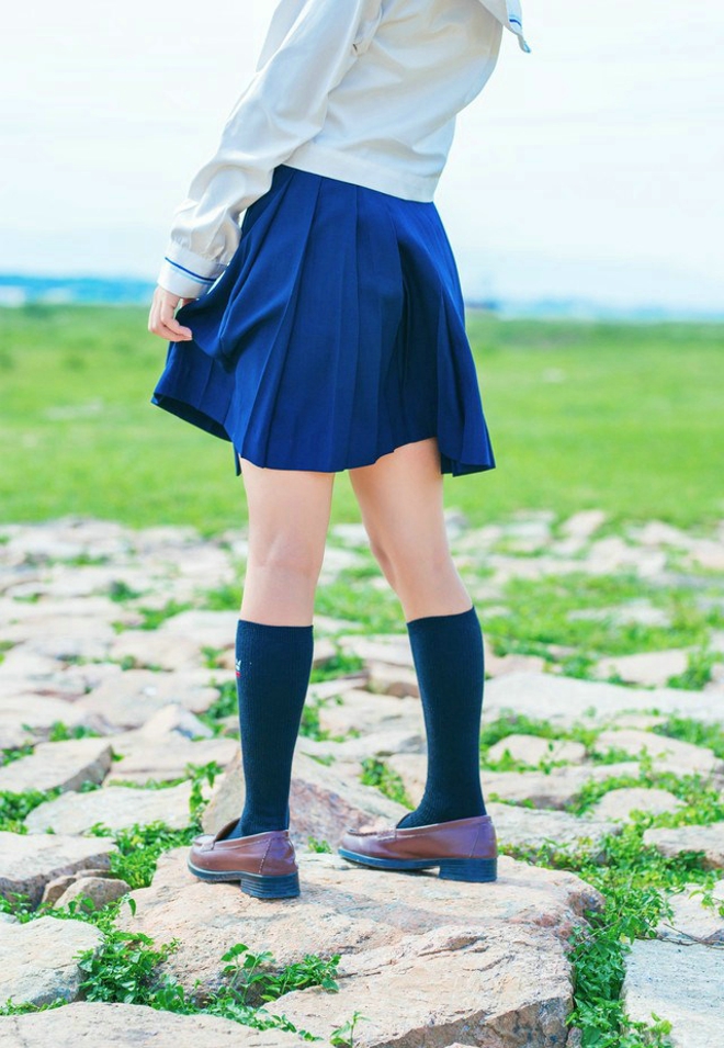 清纯阳光靓丽直发美女学生装短裙清新户外娇巧甜美阳光唯美写真