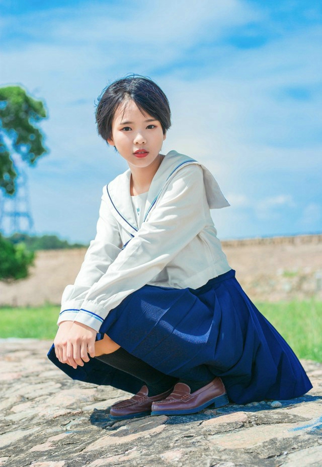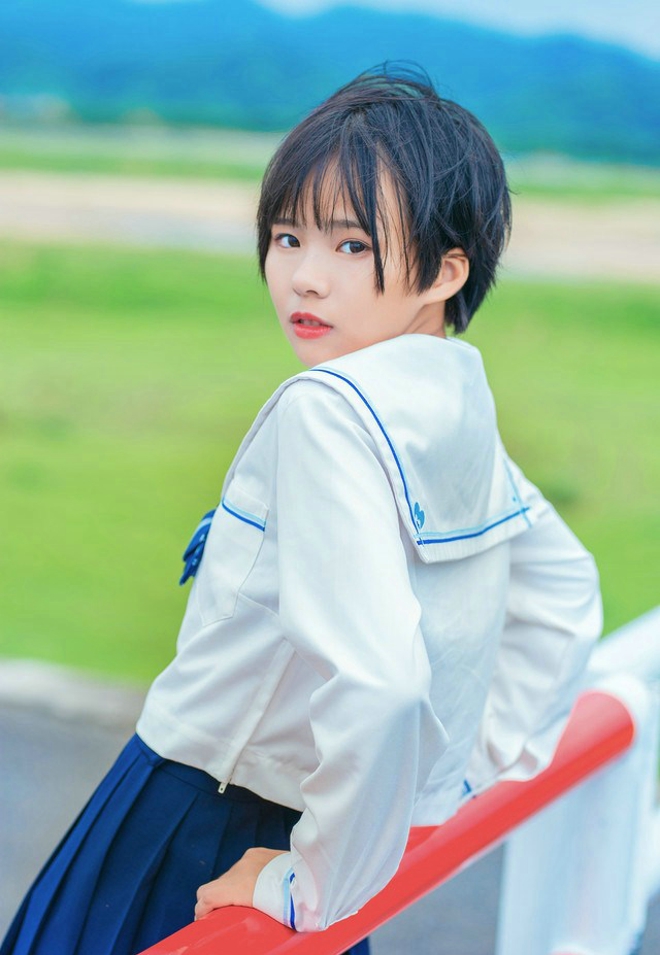 漂亮脸蛋清纯短发学生妹校园秀气优雅甜美可爱靓丽白皙唯美写真