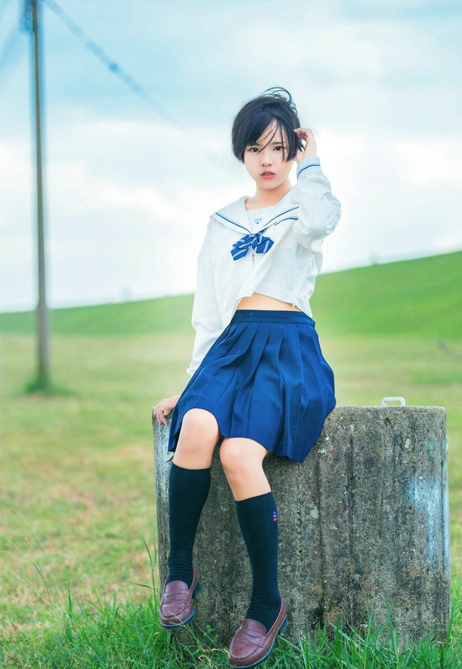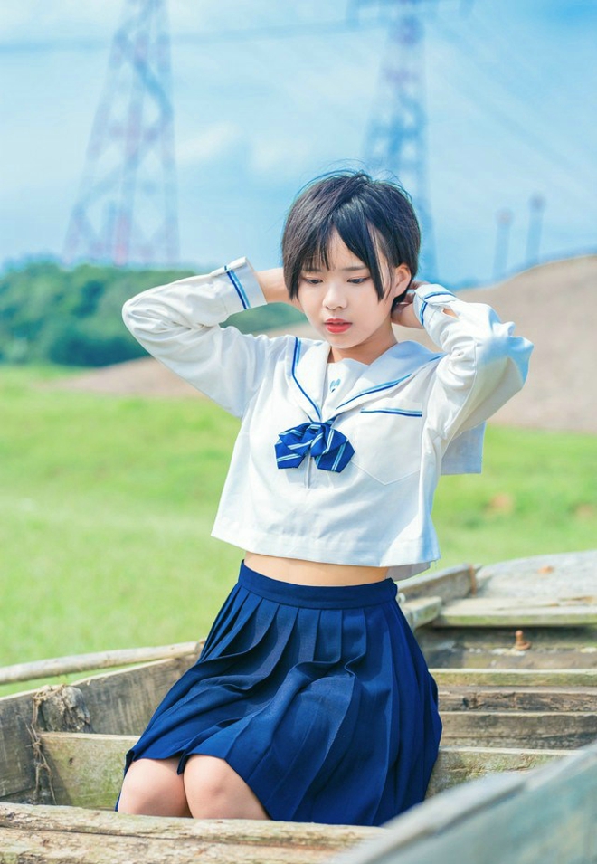 清纯娇嫩卡哇伊小美女制服清远清新阳光户外俏皮唯美旅拍写真
