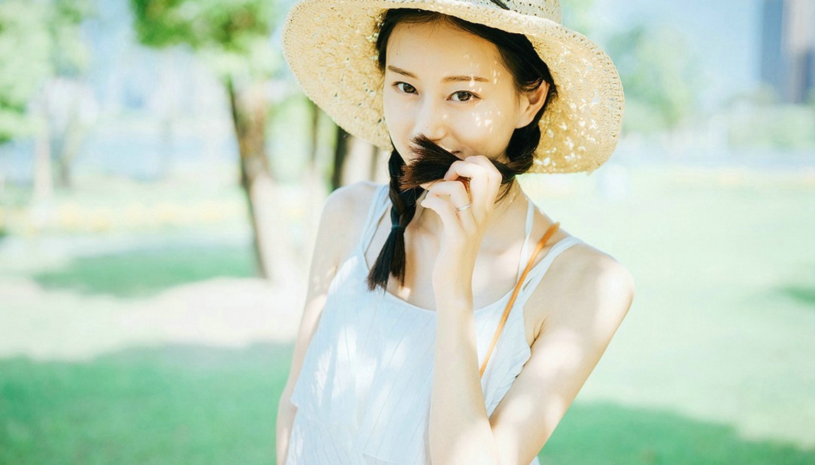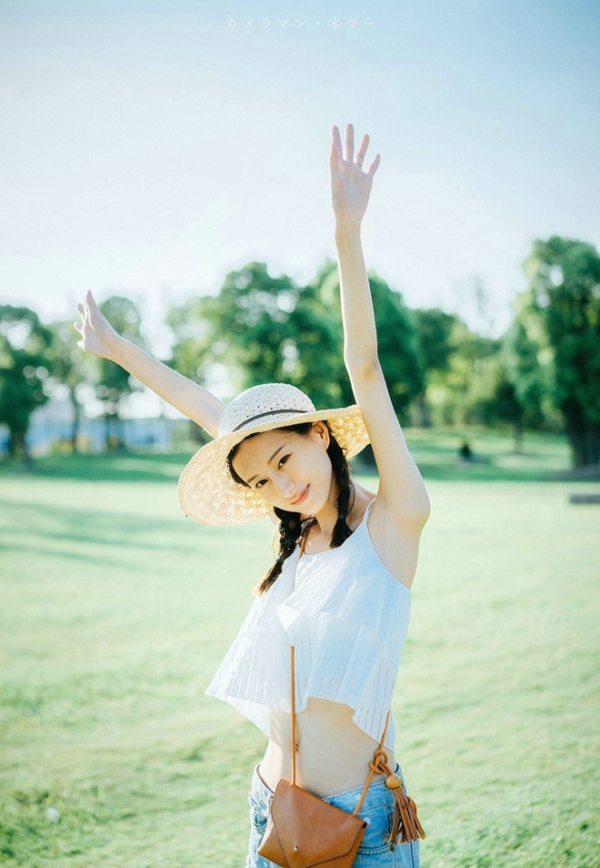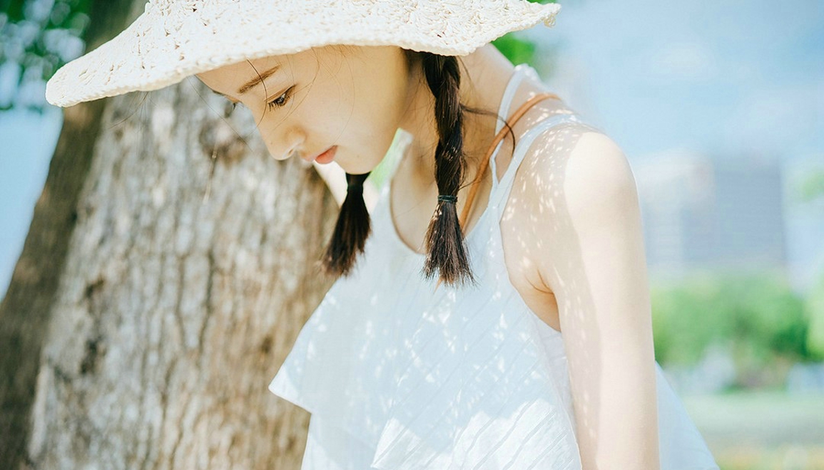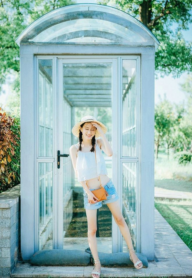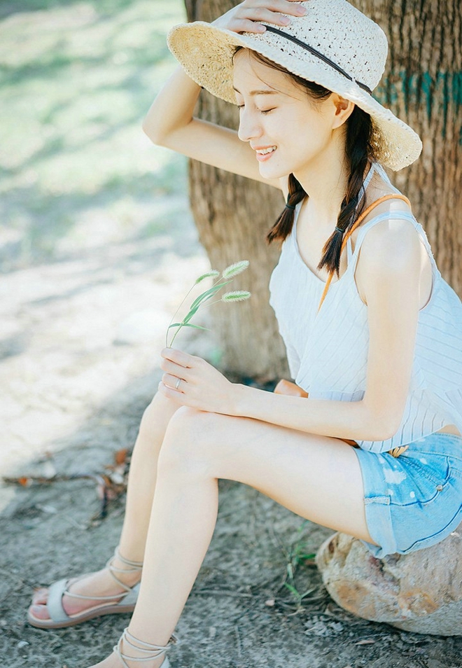 > 戴遮阳帽的清纯麻花辫美女迷人户外清新娇巧白皙靓丽唯美写真