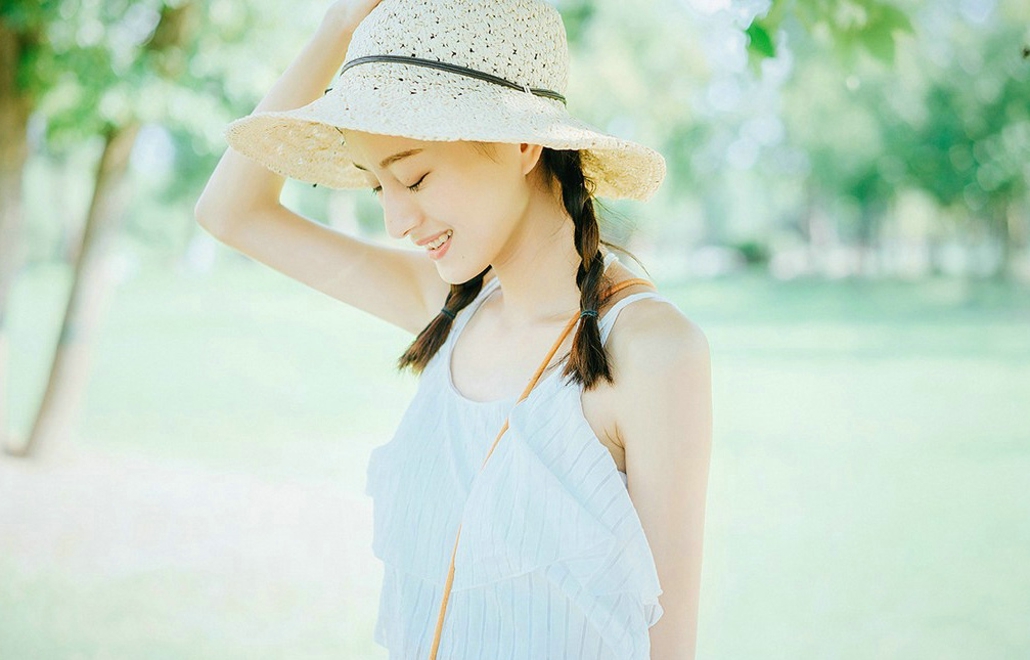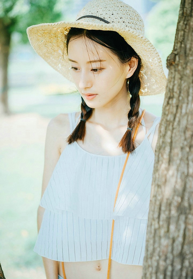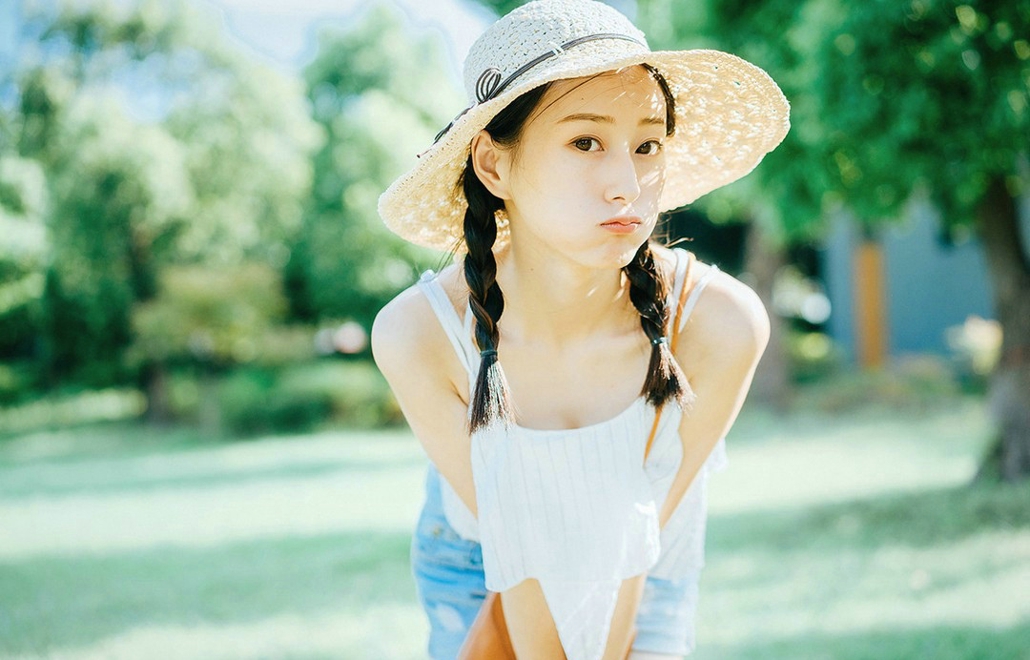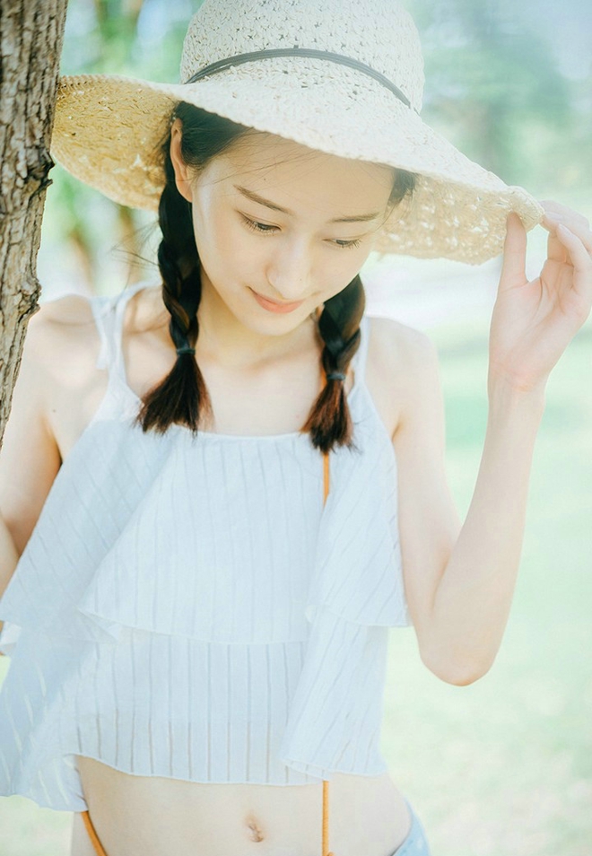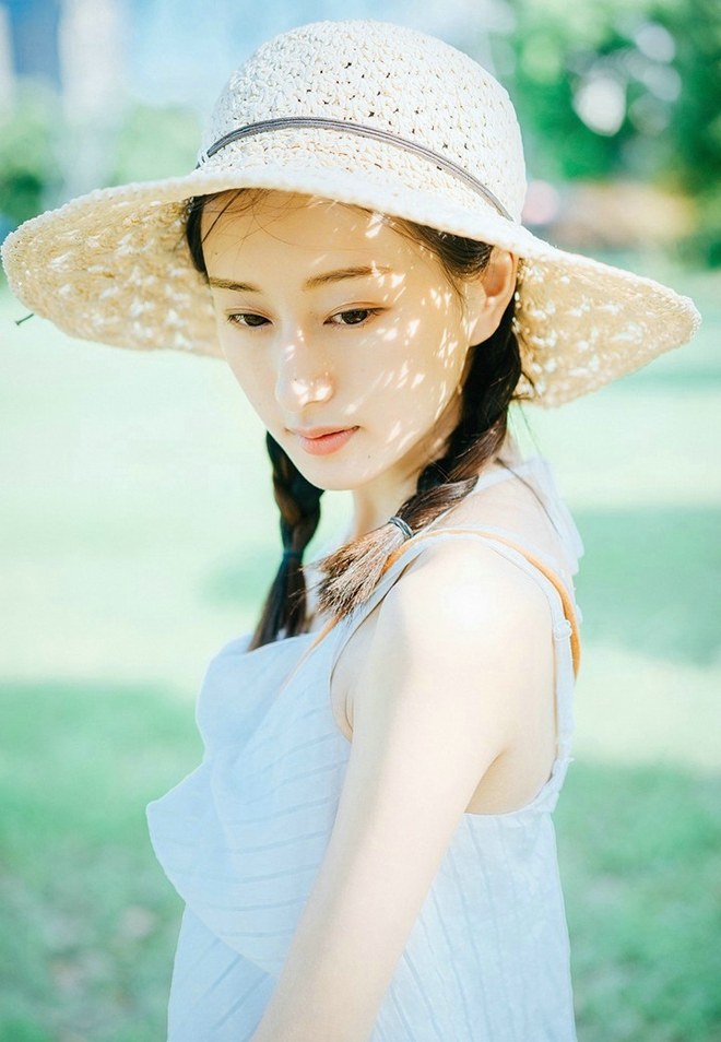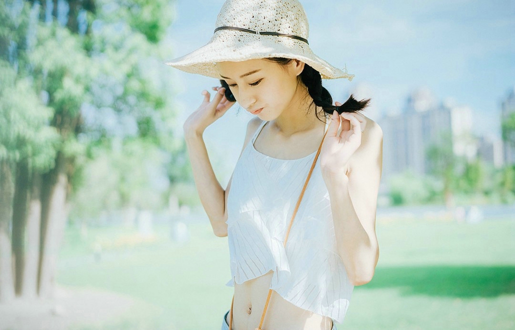 戴遮阳帽的清纯麻花辫美女迷人户外清新娇巧白皙靓丽唯美写真